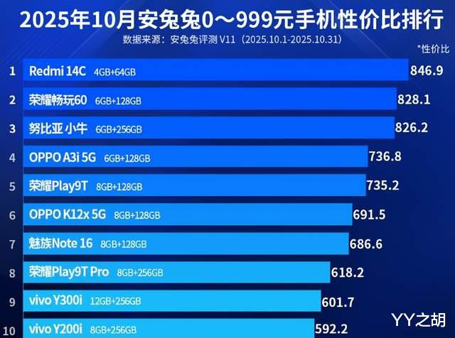 0—999元手机性价比排行榜: vivo Y300i上榜!