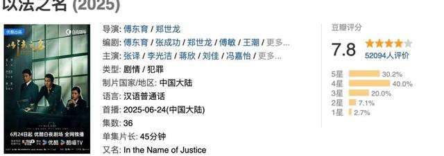 从开播起,这部聚焦司法自省,检察官内斗的刑侦剧在央视八套与优酷同步上线,这部剧以7.6高分开局,收官之际更是飙到了7.8的高分。